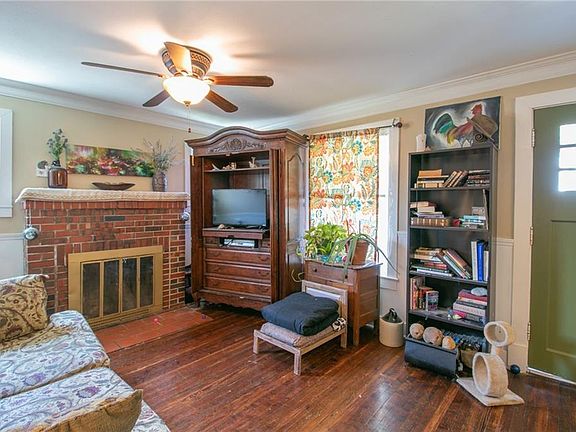 Charming historic 1.5 story bungalow. Hardwood floors throughout with a brick fireplace, replacement windows on the main floor, formal dining open to living room. Sun lit kitchen with a lovely wall of windows. Laundry off kitchen. Main floor master bedroom has 2 closets. Updated bath. Upstairs loft, 2 guest suites. Newer HVAC system, plumbing. Very cute, great curb appeal, Excellent location, awaiting your final touches. Fenced backyard with alley entrance and double size gate. Selling AS IS.