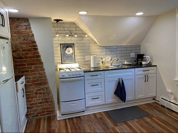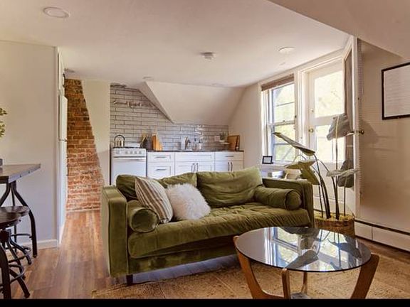 This beautiful, stylish one-bed sits at the top of one of Ithaca’s oldest and most beautiful original houses. It has lots of natural light, a fire escape balcony overlooking neighborhood, a large walk in closet, and modern bathroom. Some exposed brick in the fully functional kitchen gives charm in the open concept main area. Also nice walk-in closet for clothes and storage. Excellent location a couple blocks south of the Commons and the city library. Straight shot to IC, easy commute to Cornell, easy access to all downtown amenities and stores. Extremely walkable neighborhood and quiet, mature neighbors. Off street parking included in rent. Furnished. All hardwood floors. Utilities included in the rent. No laundry on site, but Laundromat just a few properties down. Prefer no pets. Local, attentive landlord/manager. Looking for clean, tidy, communicative tenant. If you text me I can send you a video walk through. Phone number also works in WhatsApp.