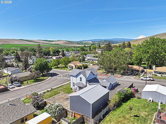 Gorgeous, extensively restored historic home in the heart of the quiet, sought-after Dufur community. Step into endless character and charm, alongside peace of mind and spacious living with 4 bedrooms, 2 bathroom, tall ceilings, air conditioning, granite countertops, stainless appliances, stunning custom main bath with extra large tiled shower and live-wood trim counter and double sinks. Comfy carpeting in the large upstairs bedrooms, practical luxury vinal plank in the mudroom and downstairs bedroom. Original, re-finished red-fir floors in the living and dinning room. Potential for a 5th bedroom downstairs by adding one door! Enjoy relaxing nights on your private outdoor patio. Large shop complete with cement floors, 12' roll-up door, electricity (220 & 110), heat & insulation! Work on projects year round, or store your favorite RV indoors! Plenty of parking in the large driveway including FULL RV hook-ups. Beautiful wood work in the home and wonderful flower beds outside. Virtually every system and function of this marvelous home have been renovated and updated including roof, heating, cooling, plumbing, wiring, flooring... this is indeed a move-in-ready home. Reduce fatigue in the kitchen with unique cushioned-vinal flooring while you enjoy your custom cabinets, hand-built with reclaimed lumber from the original home roof! Cultivate your green thumb with the established garden area right off the back porch. Save on energy bills with modern fully insulated walls, ceiling, and floors coupled with efficient water-heater and ductless heat pumps. All appliances come with home including washer, dryer, and extra freezer. Ample storge with large closets inside & tool shed outside. With school, markets, hardware, gas, restaurants, and coffee only blocks away, you'll be living the good life here! Enjoy comfort and style with this one-of-a kind gem! Buyer to do due diligence verifying square footage. Schedule a tour before it's too late!