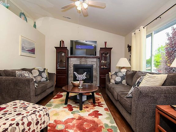 This lovely well kept home shows pride of ownership & has it all! Features include: open floor plan, vaulted ceiling, gas fireplace w/beautiful tile surround, vinyl plank floor, tile countertops, breakfast bar, 2 lazy susans, spacious master suite w/walk in closet and 9 foot ceilings. Enjoy the nice mountain views, landscaping, & relax on the front deck or covered back deck. The corner & fenced backyard w/pavered patio is ready for entertaining!