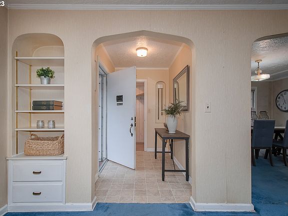 This charming home features a welcoming foyer with a naturally lit coat closet, creating a warm and inviting entrance. The coved ceilings and arched doorways add a touch of elegance and character to the space. Inside, you'll find built-ins galore, providing ample storage and display options for your personal belongings. The vintage tubular long-bell door bell chime adds a nostalgic charm to the home, while the walking mail delivery slot at the front door offers convenience and a touch of old-world charm. The living room boasts a cozy wood-burning fireplace, perfect for those chilly Oregon evenings. The wood clad windows with storm panes not only add to the home's aesthetic appeal but also provide energy efficiency and protection from the elements. Step outside into the fully fenced back yard, where you'll find a covered path to the detached two-car garage and tucked into the side yard a garden shed, offering plenty of space for storage and hobbies. The roof has been recently replaced, ensuring peace of mind for the new homeowner. Underneath the carpet, you'll discover potentially beautiful hardwood floors, waiting to be revealed and restored to their original glory. The forced air gas furnace and gas water heater provide efficient and reliable heating and hot water options. Nearby amenities include the $147M East Multnomah County Library, currently under construction, located at 1297 NW Eastman Pkwy, just 3 blocks away and adjacent to the MAX Trail Light Rail stop and City Hall. Gresham High School is also conveniently located just a couple of blocks the other way. Don't miss out on the opportunity to make this charming home in a great location yours. Schedule a showing today and experience all the warmth and character it has to offer!