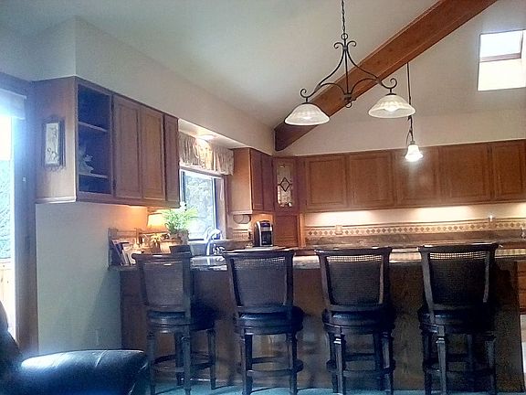 Beautiful updated 5 bedroom 3 full bath updated home in a quiet upscale neighborhood in the City but feels like country. 5 to 10 min. from hospital, doctors, shopping, etc. Extra large Gourmet kitchen with all S.S. Appliances and tons of cabinets. High grade slab Granite with backsplash in same granite. 5' window above sink with wonderful view to valley and back wrap around deck with access from family room. Two skylight and vaulted ceilings in kitchen and family room. New shower in master bath. Newer roof. 3 bedrooms and two full baths on main level with two bedrooms and bath on lower level.Forced air dual furnace with heat pump. Large Windows throughout this home. Lower level is finished perfect for kids rec. room or would be perfect for MOM and DAD if they live with you as it has a master BR and bath with open area living, dining and kitchenette. Slider to back yard with nice deck and beautiful fenced back yard.