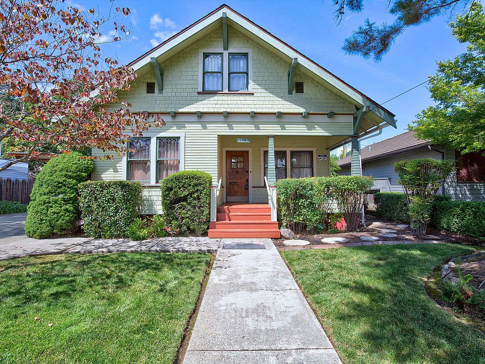 Located in historic section of Grants Pass. 1925 Vintage craftsman dollhouse is the perfect vacation destination/AirBnB. Furnished in period decor that matches the unique art deco, your guests will be enchanted. Sale price includes spa and all appliances. View the virtual tour then call for live preview. Many original features maintained to era of the house. Kitchen has beautiful sage tile and all modern amenities. Natural wood floors, carpet in some areas. Nice sized closets, beveled mirrors, downstairs bedrooms. Built-in china hutch in dining room. Backyard is low maintenance with slate patio, deck off back door, drip system to planters and new covered spa. Oversized one car garage has huge separate storage area. Make an offer on furnishings, too!