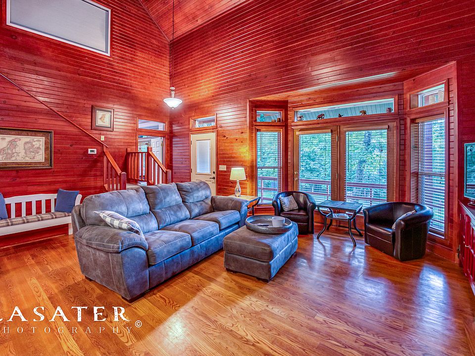 Gorgeous cabin sitting on 14 very picturesque acres located in Parthenon Valley just 5.4 miles from Jasper. This property is stunning to say the least; from viewing its beautiful scenery on the covered front porch to watching the trees sway in the breeze or catching the sun set over the mountain tops. The home features a cathedral ceiling, tongue and grove wood, beautiful hardwood floors, oak cabinets, awesome stone fireplace, French doors leading out to the front porch from your master bedroom and living room. This would make a great income property or forever home. It has Hwy 327 and county road frontage, detached one car garage and an additional 'tiny' home with bathroom and loft for your guests. Close to the Little Buffalo River, Buffalo National Park and Ozark National Forest.
