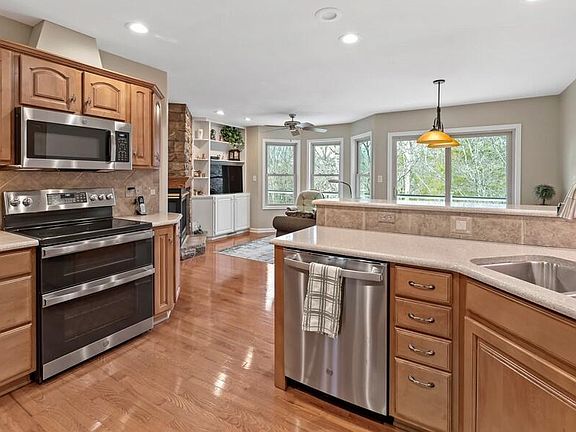 Step inside and be greeted by a gorgeous stone fireplace, hardwood floors and views of beautiful trees. Sit back and relax in the living room, hearth room or entertain in the terrace level recreational room with a full bar.
