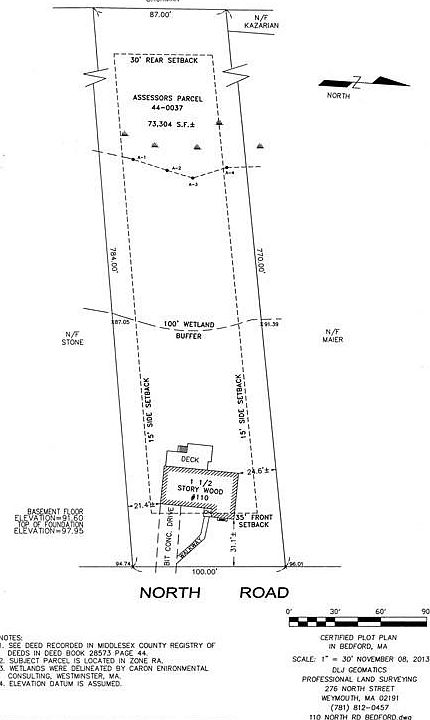 Existing house to be torn down. Property next door, is new construction, recently sold for $1.5m. Great location, near center, beautiful lot, fabulous school system. Town of Bedford is in great demand. Wetlands at rear of property, site has been marked, with wattles in place for buffer. Drawings available for additional cost, same designer as new home next door.