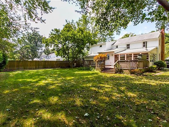 Charming 4 bedroom colonial situated on a quiet corner lot on a neighborhood street in West Irondequoit. Featuring hardwood flooring throughout, this home has no shortage of charm! The sleek eat-in kitchen houses stainless steel appliances and granite countertop w/breakfast bar! Ample cabinet space! A skylight overlooks the dining area! Den off the main entrance could also serve as a formal dining room! The spacious living room houses wood burning fireplace! The second level houses 4 spacious bedrooms. Master houses ensuite and walk-in closet! Incredible enclosed porch w/natural woodwork off the back of the house overlooking the spacious partially fenced yard! Also features electric and a wood stove! Perfect for entertaining! H20 tank new last winter (2018)! Furnace is under 5 years old!