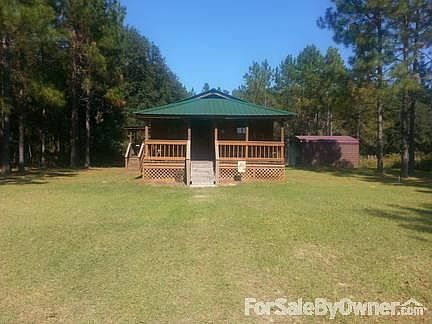 Cabin has a green metal roof, cedar stained lap siding large front porch,side covered porch. outdoor kitchen ( fish house ) attatched refrig,cook top .stainless sink and vent hood. covered swing / deer cleaning station w/lights and water.Enjoy the outdoors standing next to the outdoor fire pit ! Inside you will find two bedrooms ,two bathrooms,living room dinning room and kitchen. Two miles from GRAND BAY WMA and three miles from BANKS LAKE