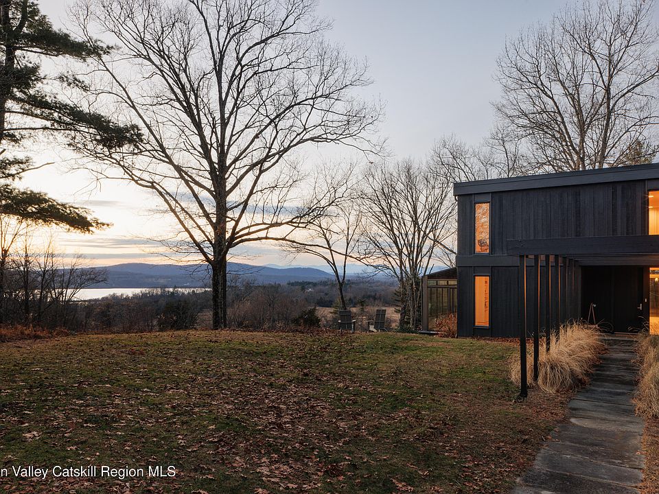 An exceptional 49 acre property only 5 minutes from Rhinebeck Village, offering a rare blend of privacy, space, architectural character and spectacular Hudson River and Catskill Mountain views. A long winding driveway leads up to the modern residence perched on a hillside overlooking the majestic grounds and sweeping west facing views of the horizon and stellar sunsets.