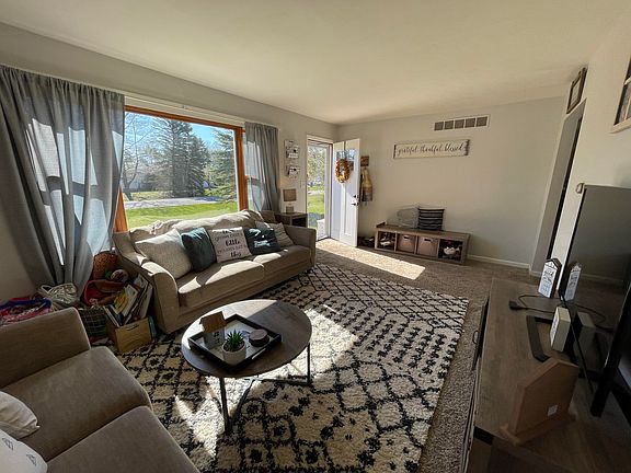 Country living close to town. This three-bedroom, two-bath home sits on a large private lot surrounded by trees on 3 sides, complete with an expansive back deck that overlooks the fenced-in yard. The fully finished basement has a built-in bar and 2 nonconforming rooms.
