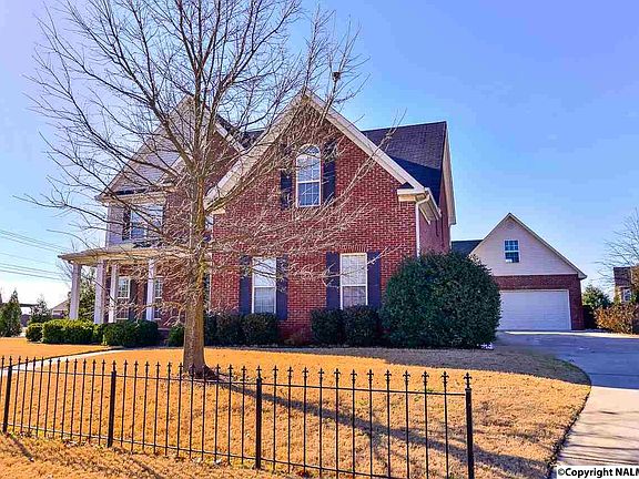 Fabulous 2-story home waiting for new owners! Large Detached Garage with bonus storage area upstairs! Home has an open floor plan with HUGE kitchen, lots of cabinetry, island, granite, & breakfast room & Formal Dining. All bedrooms are upstairs. Master has sitting area and private spa-like bathroom. Fenced in back yard on a corner lot. Close to shopping with easy access to I-565/Research Park/Redstone.