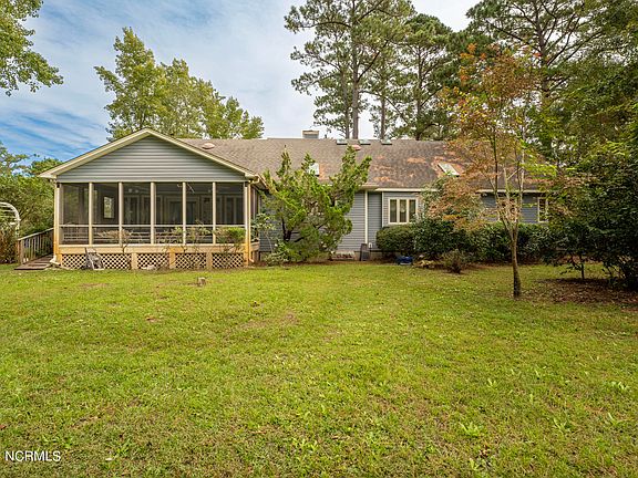 Welcome to 110 Olde Point Road! Nestled on a generous lot over half an acre, this stunning 2,235 square foot residence offers 3 spacious bedrooms, 3 full bathrooms and mainly first-floor living.The heart of the home is the expansive living room, featuring a cozy fireplace. Adjacent to the living room, the formal dining room seamlessly flows into the show-stopping kitchen. This kitchen is a delight, boasting ample counter and cabinet space, a stylish backsplash, stainless steel appliances, and a large kitchen island. Off the kitchen, you'll find a large sunroom that leads out to a charming screened-in porch, perfect for enjoying your morning coffee or evening relaxation. The master bedroom, located on the first floor, has a walk-in closet and an ensuite bathroom featuring dual vanities, a large soaking tub, and a walk-in shower. Another spacious bedroom and a full bathroom complete this floor. Upstairs, you'll discover a large third bedroom and an additional full bathroom, providing plenty of room for family or guests. Enjoy your private backyard in the screened-in porch. The home also has an invisible fence surrounding the whole property! To top it off, this home is located in the highly sought-after Topsail School District.
