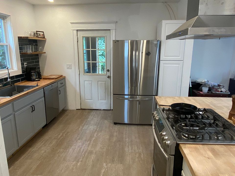 This single family home is a recently renovated 3 bedroom. The home has been carefully renovated keeping the original details while adding modern amenities. The kitchen features a 5 burner gas range including a wok burner and powerful 960 CFM exhaust hood. There is a dishwasher, 30 cubic foot refrigerator, and a massive sink with spray nozzle set in butcher block counters. Kitchen and dining areas feature in-ceiling speakers with a bluetooth receiver that comes with the rental. Washer/Dryer in basement. Hot Water is via an On-Demand boiler for efficiency. Gigabit Internet from Archtop Fiber.