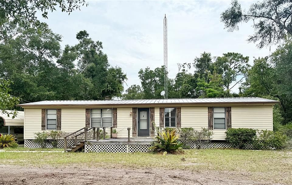 Like, Totally .... Home Sweet Home -80's Style. Crank up the cassette player and slip into nostalgia with this 1981 Peachtree model manufactured home. With 3 bedrooms, 2 baths and almost 1400 sq ft, this rad retreat has all the space you need to live your best throwback life! With some TLC it could be restored to its vintage glory! A great property for investors. Totally tubular features, such as a classic fireplace for cozy nights watching VHS tapes. Built in dinette in the kitchen because breakfast nooks were the spot in the 80's! Plush carpeted bedrooms, living room and dining room for authentic retro comfort. All bedrooms have walk in closets and two full airy bathrooms to spike your hair and saturate in Aqua Net! Indoor laundry room and utility area to wash your parachute pants and other neon fashions. Outside perks such as sturdy metal roof built to last, 420 sq ft workshop for hobbies, projects, or maybe your very own neon-lit arcade. Two car carport to keep your trans am protected. Spread out on the 2.46 acres of fresh air and elbow room. Directly across from Ochwilla Elementary, tucked off State Rd 21 and just a short cruise to Gainesville for shopping, dining, and all your modern convenience needs. This home is more than a blast from the past, it's a rare chance to own a piece of retro charm with todays comfort. So tease up that hair, dust off the boom box, and make this 80's classic yours.