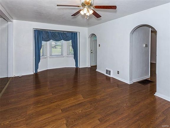 Full BRICK Cottage Style Home with Arched doorways throughout! Entry foyer with laminate flooring and coat closet - that opens to large living room with wood laminate flooring and bay windows. Separate dining area with built in corner hutch. All kitchen appliances will stay. Unfinished basement provides lots of storage. Laundry room with dump sink , toilet and washer/dryer stay with home. One car garage and shed for extra storage. Large backyard! Electric has been updated with 100 amp breakers. Seller will leave Cub Cadet riding mower and push more. Be sure to ask your agent about Collinsville's First Time Homebuyer Program!