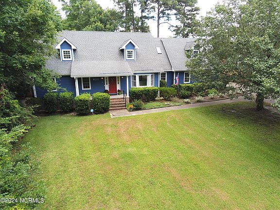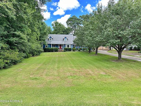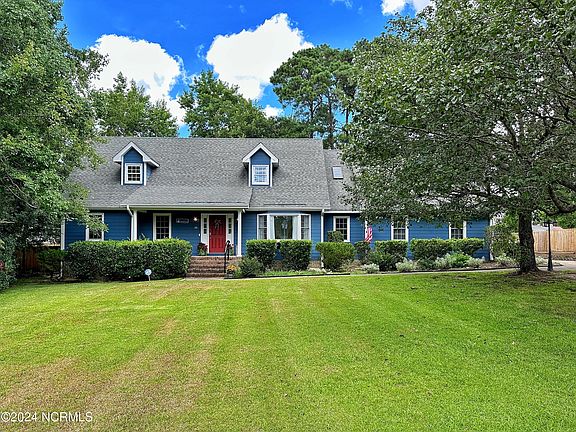 Conveniently located near Downtown Swansboro, this charming home sits on over half an acre, welcoming you with a picturesque driveway surrounded by mature trees. With 4 bedrooms and 2.5 baths, it offers spacious and versatile living. Enjoy the luxury of heated and cooled sunrooms on both the main floor and upstairs off the primary bedroom, perfect for enjoying your morning coffee or unwinding at the end of a long day. This home combines comfort, functionality, and endless possibilities in a beautiful setting. Upon entering, you are greeted by a beautiful wooden staircase, a living room with tall vaulted ceilings, and a formal dining room with a large bay window. The spacious kitchen features an island, plenty of countertop space, and a breakfast nook. Off the kitchen, you'll find a large laundry room and a butler's pantry. The primary bedroom includes an expansive additional room, perfect for a dream closet, private office, gym, or a homeschool classroom. The primary bathroom is equipped with a shower, a standalone clawfoot soaking tub, skylight and a convenient laundry chute. A two-story shed in the backyard provides ample storage or workshop space.