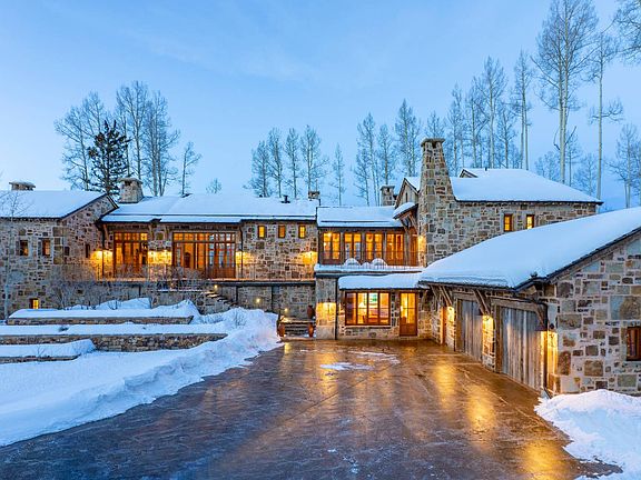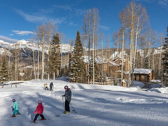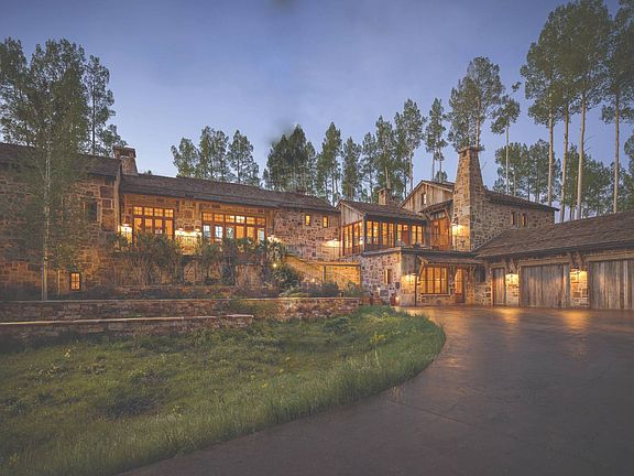 Among the most sought-after ski properties within Mountain Village, 110 Palmyra Drive is a beautifully hand-crafted stone estate reminiscent of a Tuscan farmhouse or Hill Country ranch. Artfully combining rich antique oak timbers with rugged imported sandstone, the home's interiors are warmly accented with long-leaf pine, clear-grain fir, rough-sawn flooring & tumbled brick. Decorative ironwork & custom-made doors & windows showcase timeless craftsmanship throughout. Large entertaining rooms, multiple guest suites & gourmet kitchen feature a total of 8 fireplaces. The home's rich interior was expanded since its original sale by roughly 3,000 sq feet to now include a wine cellar, media room, ski / fitness room, recreation area with bar, additional guest suites & outdoor area w/ fire-pit.