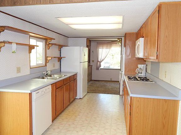 Awesome views! 2 bedroom, 2 bathroom mobile home on .46 acre lot. Detached garage with bonus room. 2 storage sheds/workshops. Covered deck front and back. Spacious floor plan. Newer double pane windows. House has propane heater and light and airy kitchen. Fruit trees, garden area and retaining wall.