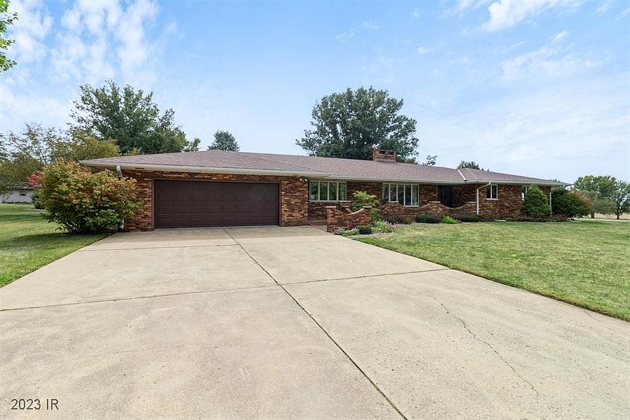 This beautiful 3-bedroom, 3-bathroom home is situated in the West Marshall School District and is perfect for those who enjoy small-town living. The house is built for entertaining and features a brick 2352 sq. ft. ranch plan with an oversized 2-car attached garage. The kitchen has plenty of cabinets, pantry, and an eat-in area. There is a formal dining room, formal living room, and a family room with a wood-burning fireplace. The primary bedroom has a walk-in shower with grab bars. The first-floor laundry and mudroom are convenient. There is also a nice office space off the front entrance. The basement is partially finished with one room that would be good for a recreation room or non-conforming bedroom, family room area that has a built-in bar, a second fireplace, and a ½ bath. There is a tremendous amount of basement storage. The covered front porch and nice size patio with a barbeque pit are perfect for outdoor gatherings. There is even a wheelchair ramp in the garage going into the home. All this is on almost an acre (.9) corner lot with a nice backyard and side yard