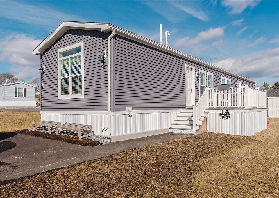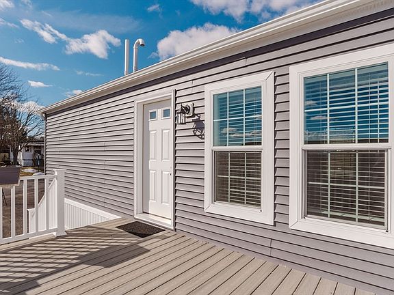 This stunning coastal style home will check all of your boxes if you're seeking the perfect retirement home in a 55 + community (Pine Hill Estates). Not your average single, this is an oversized (16) wide drywall home featuring luxury vinyl plank flooring in the main living areas, 45 oz carpet in each bedroom and a stainless steel applianced kitchen with 42" soft close maple cabinetry. 8' flat ceilings are found thru out the home. Chefs will fall in love with the stainless steel farmers sink, walk-in pantry and the huge kitchen island! Thru out the home you'll find lots of recessed lighting and upgraded lighting fixtures. Primary bedroom has walk in closet and ensuite bath with a 60 " walk in shower with glass doors and cultured marble vanities with premium faucets. The sale is completed by a 10 x10 storage shed set on its own concrete slab, a 10x12 composite deck, and central air conditioning. A must see for the discerning buyer.