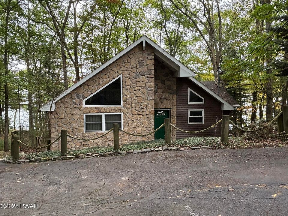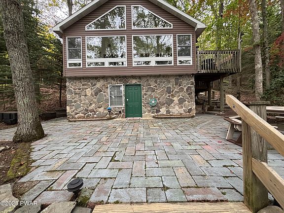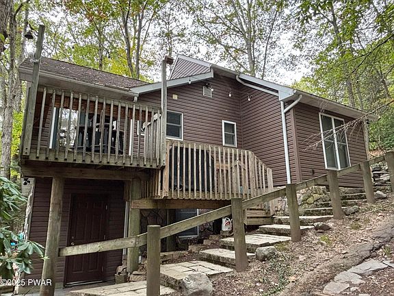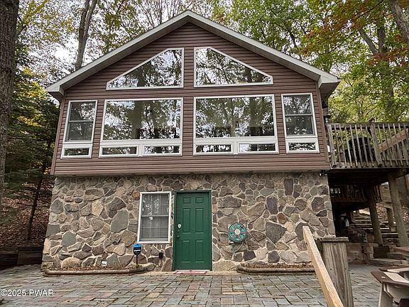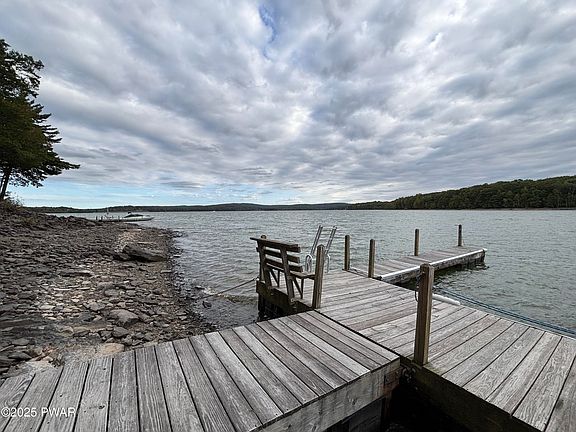 Lake Wallenpaupack Lakefront, 3 Bedrooms, 2 Bathrooms, plus lower level shower/sink, walk out basement. Oversized living room windows provide year round lakeviews, gentle walk down to the lake, boat dock included, firepit, large brick paver patio, no community or HOA to deal with, short term rentals permitted per Township guidelines.