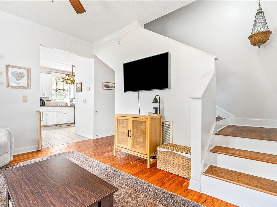 Step into Auburn history with this charming mill cottage that blends character with modern updates. This home showcases beautiful hardwood floors in the living room, hallway, and main-level master bedroom, while the kitchen has been thoughtfully updated with tile flooring, stainless steel appliances, and a stylish backsplash. Upstairs, you’ll find two generously sized bedrooms with updated LVP flooring. Nestled on nearly an acre within the Auburn city limits, the property offers a spacious backyard, covered parking, and a storage shed for extra convenience. Located less than 15 minutes from Auburn University, this home combines historic charm, everyday functionality, and a prime location! Property is zoned for STR.