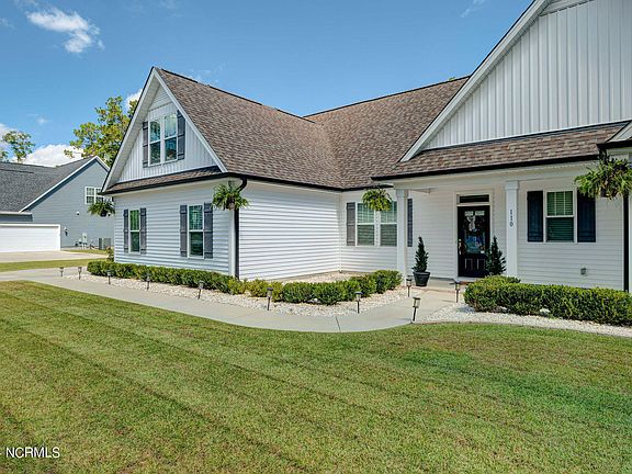 Sellers are ready for a new family to enjoy this well crafted home. So if you are looking for a quiet place to call home but still just minutes to dining and shopping it's time for you to check out 110 Pebble Beach. Built in 2019 this three bedroom, three full bath home is nestled in a natural buffer of trees offering privacy and seclusion yet just a short distance to HWY 17. Options made by the Sellers have added desirability to the home to include tankless water heater, gas stove, gas logs and owned propane gas tank. There is LVP throughout the main living level which is carried through to the master bedroom. The split floor plan offers the master suite on one side of the home with two additional bedrooms and shared bath opposite. In addition, there is a finished room over the garage with a full bath. This could be another bedroom, craft room or gaming room. In addition to the attached two car garage with epoxy finish floor is the 20 x 25 detached garage. Whether you need a place to tinker, space for a home office (s) or additional garage/storage space, you are all set. Relax in your screened porch, 16 x 10, grill on the patio or play yard games. Inside and outside, there is great space for living and entertaining. Yard maintenance is easy with an irrigation system and landscaping which is manicured but not 'fussy'. Too many wonderful attributes to mention but waiting for you to view. Make plans to see 110 Pebble Beach soon. Non-HOA community.