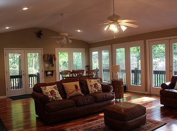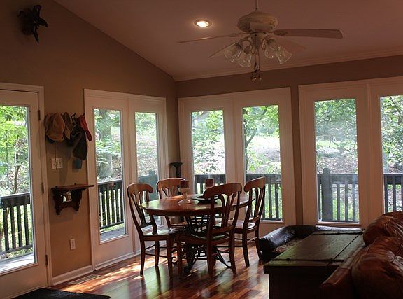 Little piece of heaven with a water view from the wraparound decks on this ranch home with an open floor plan. The great room features a vaulted ceiling, 3 walls of windows & French doors and laminate wood floors. The kitchen boasts nice white cabinetry, granite counter tops including a bar counter and stainless steel appliances. 2 bedrooms and 2 bathrooms complete this charming home. The exterior features a covered deck and 2 open decks, an easy walk to the water and a dock with new boards.