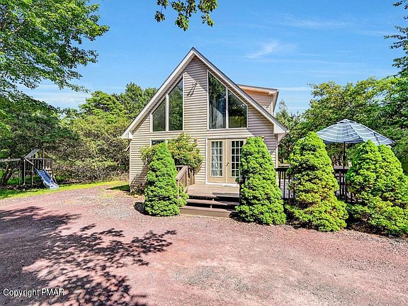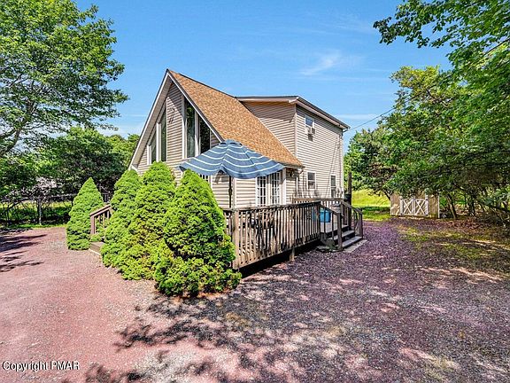 Come Preview this 3 Bedroom, 2 Full Bathroom Home located in Towamensing Trails Community. This home could be a Primary Residence or Short Term Rental. Once inside you'll find an amazing Open Concept Kitchen, Dining Room & Living Room which offers a Propane, Stone Fireplace and vaulted ceilings. Also on the Main Level are 2 Bedrooms and one Full Bathroom. Upstairs, a spacious & vaulted Loft Area/Master Bedroom Suite that looks out the two large, front gable windows that Brighten the Entire Home. Wrap-Around Deck w access through Two Sets of French Doors... Perfect for morning coffee, meals or gatherings. Two Sheds (8x10 & 10x16) for extra Storage, a Circular Driveway & surrounded by Mature Trees. Community Amenities & Many Nearby Pocono Attractions- Skiing, Water Parks, Casino Etc.