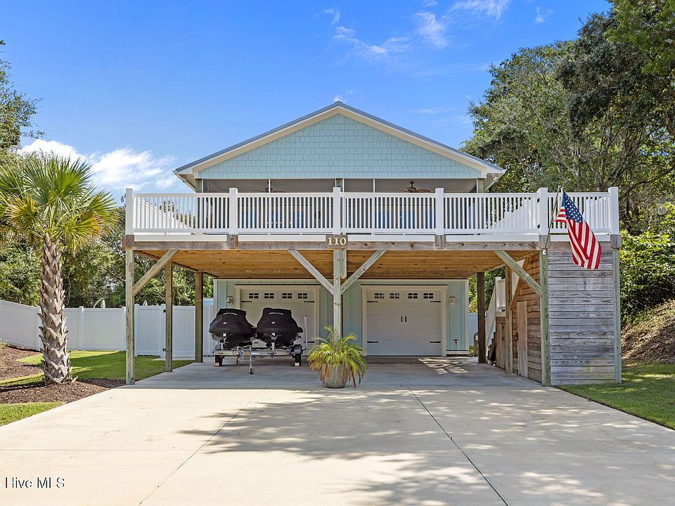 Welcome to 110 Periwinkle Drive, a stunning 4BR/4BA coastal retreat in the heart of Emerald Isle. Built in 2021 with a durable metal roof and fiber-cement siding, this home blends modern upgrades with timeless beach charm. Inside, 9-ft ceilings, luxury flooring, and a bright open layout connect the living room, dining, and chef's kitchen for effortless entertaining. The primary suite is a private sanctuary, while three additional bedrooms and baths offer comfort and privacy for family and guests. Outdoor living shines with a screened porch, expansive decks, private pool, and outdoor shower—perfect after a day at the beach or at the nearby public boat ramp. Just minutes to shoreline access, Emerald Isle Boat Launch Park, trails, shops, and dining, this home captures the best of Crystal Coast living. Ideal as a full-time residence, vacation retreat, or investment property, this rare find offers both lifestyle and value.