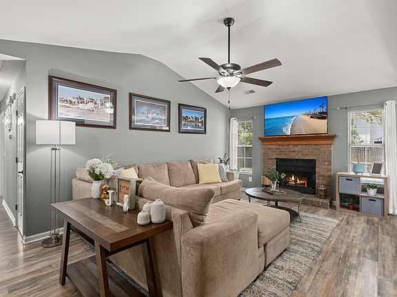 Welcome to this charming home in the highly sought after community of ''Oak Creek''. This home has TONS of upgrades and is centrally located. The HVAC was replaced in 2016, a NEW roof in 2020, and a NEW water heater in 2018! The home has been significantly upgraded with new vinyl plank flooring, all new light fixtures throughout, and freshly repainted. As you walk in, the living room is vaulted to give it that extra spacious feel combined with a gorgeous brick, wood burning fireplace for those cozy winter nights. The kitchen and bathrooms have tiled flooring and carpet in the bedrooms to make it soft on your feet. The kitchen is a galley style kitchen, which makes it easy to cook for guests. As you exit the backdoor, you'll walk out onto a large back patio that opens up into the spaciousbackyard where your furry little friends can play! There is a doggy door as well and also a 6ft foot privacy fence. This backyard is perfect for enteraining! This home is located just a short walking distance from restaurants and shopping! It is only 10-15 minutes from Summerville or Moncks Corner, only 20-25 minutes from the airport and downtown Charleston, and 30-40 minutes from the beaches! Don't miss out on this gorgeous home and come see it today!