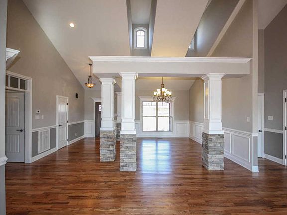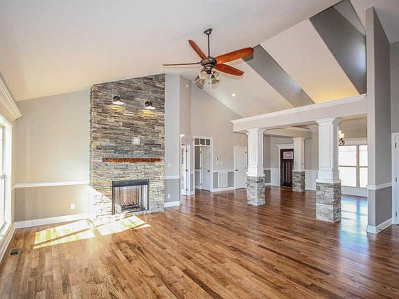 The quality is obvious with this new home! Inside boasts an open concept, gleaming hardwood floors, extensive crown molding & trim work, gorgeous granite counter tops throughout & much more! Over-sized great room features vaulted ceilings, see-thru fireplace with formal office on opposite side, upgraded light fixtures & is open to kitchen & dining. Neutral color scheme throughout! Efficient kitchen has a large island, stainless appliances & a HUGE walk-in pantry. Over-sized laundry room has custom, sliding wood doors. Master suite with trey ceiling is naturally lit & has a claw-foot tub, tiled walk-in shower, dual vanity & large walk-in closet in the bathroom. Back porch with composite decking is where you can enjoy year round mountain views.