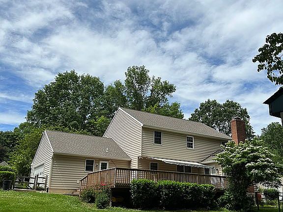 This two-story center hall colonial opens to a living room to your left and dining room with crown moldings, chair rails, and wainscoting to your right, the back of the home features an open kitchen and family room The large kitchen has cherry-stained wood cabinets, granite counter tops, and an island. The kitchen flows into the family room with a fireplace and a French door that leads to a large new deck with an retractable awning. A laundry room and powder room complete the first floor. the second level has four bedrooms and two full bathrooms. The master bedroom has a walk-in closet. The remaining three bedrooms share a hall bathroom with a separate sink vanity area. The basement level is partially finished.
