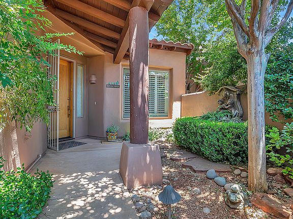 Fresh and ready to move in. Meticulously maintained Southwest townhouse situated in a quiet, desirable haven close to dining, shopping and Sedona's best golf courses. This private energy efficient home includes 2 master suites, a guest bedroom, 3 full bathrooms and a powder bath. Spacious kitchen/dining combo opens to a private north facing patio on the lower level, perfect for outdoor dining. A second level deck is the perfect spot to unwind and enjoy Sedona's beautiful views and mild weather. Lots of light and a feeling of peace and security grace this desirable home. Plantation shutters, double glaze windows, and custom paint adorn this open concept home. HOA covers roof, stucco, exterior paint, community landscaping, pool, spa and trash.