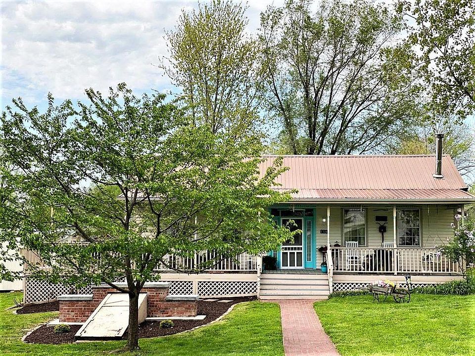 Are you looking for a slice of paradise right here in Boone County? Look no further than this absolutely delightful home at 110 Pike Street in historic Rocheport! Less than a block from the Rocheport Katy Trail, this charming home features 10 foot ceilings, a large sunroom and deck overlooking the backyard, mature trees, extensive landscaping, a garden shed built in 2018, a maintenance free metal roof, and a double lot with raised garden beds. Cozy up in the winter in front of the Vermont Castings wood stove with a catalytic converter. Enjoy the kitchen island, inviting front porch complete with porch swing. All new gutters in 2018, new paint, and new furnace and air conditioner in 2017. And--a large root cellar with new concrete work done in 2020! Washer, dryer and deep freeze convey