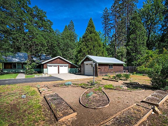 Cabin with room-a-plenty. Comfort and Style with a great fit for year-round-living, vacation get-away /rental. Located in the quaint & majestic 'Village' of Coffee Creek; near the headwaters of Trinity Lake & at the base of the Trinity Alps. Set on nearly 1/2 acre, set off the road for a cozy country setting. The pride & thoughtful planning at the time of construction, is obvious. From small to large groups; there is a comfortable spot to savor the mountain life. Spacious living room enjoys an expanded outdoor living areas, through gracious french doors to a covered patio. A dining room fit for that turkey dinner, or a good game of monopoly. The Primary bedroom, w/ double walk in closets & access to full bathroom; is on the main level. The upper level features 2 bedroom areas; w/ vaulted/coved ceilings & closet / storage space. One features a balcony to mountain views. A full bathroom is also on the upper level.Current owners have put the bonus area behind attached garage, to use with double bunk beds. The garage / shop area has been tranformed to a fabulous game / rec room; but can easily be put back to use for vehicle parking. Additional detached garage for recreational toys & penty of paved parking.