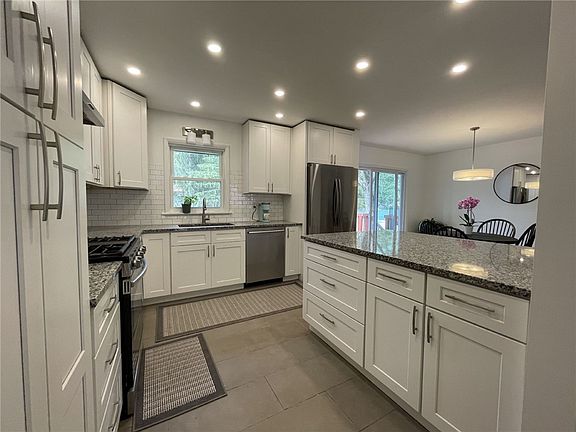 Welcome to Pinewood Place. This updated home in Northeast Ithaca includes 4 bedrooms and 2 baths on the main level. The updated kitchen features stainless steel appliances and granite countertops. Both the updated hall and master bathroom include dual vanity sinks. 2103 Sq ft of living space (including 684 is in the lower level).. Lower level features a family room, a fifth bedroom and a large utility room. A large two car attached garage finishes off the lower level. The front yard features flowering trees while the backyard is fenced.