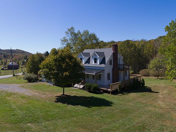 New roof put on this summer. New pluming throughout house. New dining room. 3 porch areas with one exterior balcony. City water with 2 developed springhouses. 9.5 acres with a creek, woods, apple orchard, blueberries, and great soil for growing a garden.