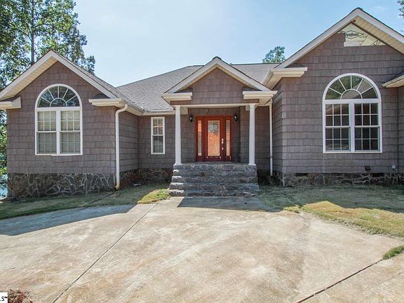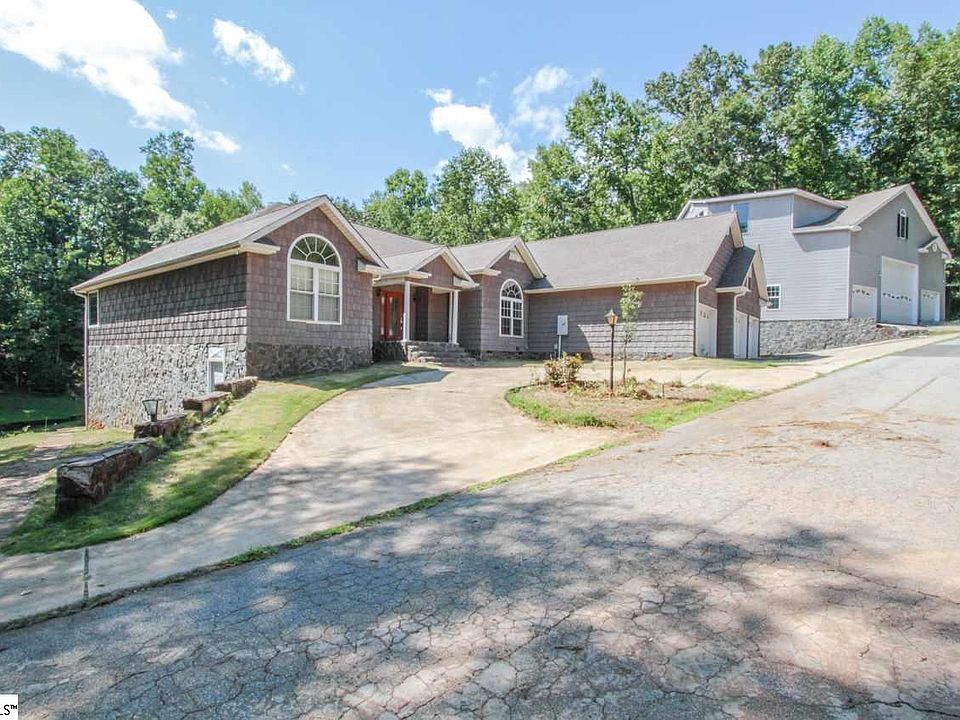 Bank Owned! Cedar Creek on Keowee! Lakefront spacious 6BR, 5 ½ Bath home with a separate 2BR, 1 bath apartment on the basement level and a detached RV/Boat Garage with another inlaw suite, Mancave or apt with a Fireplace, solid wood walls, floors & ceilings and beautiful views looking down the cove to the Open Water. With over 5200 sq ft., the main level offers all Hardwood floors, 10 ft ceilings and a spacious open living area including a Great Room with Fireplace, formal Dining Room, Breakfast Room, Sunroom & Kitchen. Ideal for large family gatherings or entertaining. The Master Bedroom Suite features a walk in closet, dual sinks, separate shower, jacuzzi tub and Cove Views of the lake. A 20 x 22 Rec room is over the 3 car garage. Screened porch & Trex deck. Needs some TLC, but an excellent investment for renovation on a private cul de sac lot.