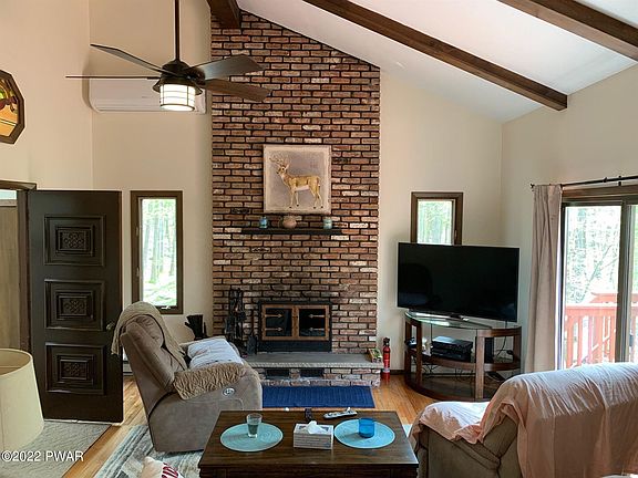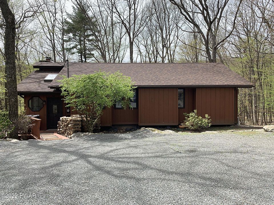 Here is the perfect POCONO RUSTIC CHARMER!! With TONS of privacy sitting on over an acre and backing up to Greenbelt, you will be singing with the birds and breathing in the fresh air. All on one level with 3 bedrooms, 1 full bathroom and (1) 1/2 bath, a cozy real wood fireplace, hardwood floors, split units, newer roof and a two tier deck for entertaining and enjoying nature. This ranch will have you saying yes to the house in no time! Come look today!!