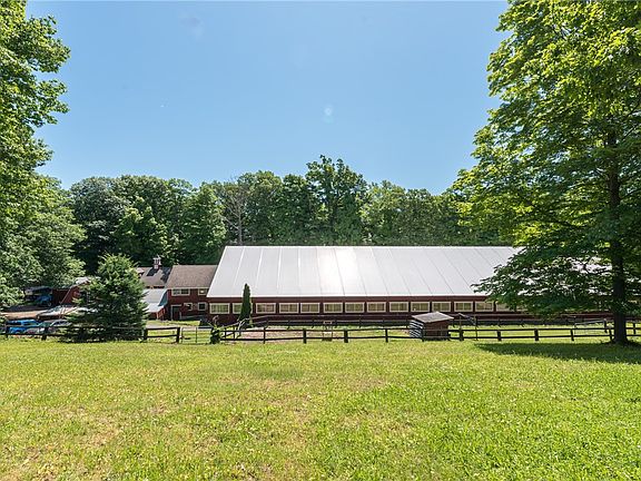 RIDGELAND FARM, A long established 6.3 acre private equestrian facility nestled in the heart of Connecticut with a 3150 sq.ft home, a 10 stall barn that has a owners' tack room, grain room, wash stall and laundry. This barn is attached to the 72 x 210 ft indoor arena which has 2 viewing rooms. There is a 25 x 55 heated maintanence garage with studio above. The home offers an open floor plan, large kitchen/dining area, 4 bedrooms, a beautiful master bedroom suite, 3 full baths, great room, garage and shop below. The stone patio is a favorite spot for sitting back and overlook the horses grazing in the pastures. Additional 19.6 acres of Hay fields, and pasture available see listing # (24022256)