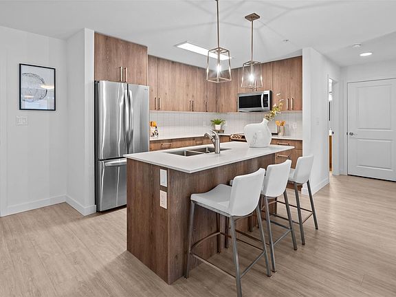 THETIS LAKESIDE – This sought-after 2019 building is known for its outdoor lifestyle appeal, direct access to Thetis Lake, and quick highway connections. This private, bright, east-facing third-floor 2-bedroom condo offers an ideal layout and LARGEST BALCONY IN BUILDING - perfect for BBQs and relaxing after a day on the trails. Interior features include quartz countertops throughout, walnut veneer cabinetry, and upgraded high-end stainless steel appliances. The oversized storage locker is located on the first floor. The pet-friendly building (no size limit for dogs) includes a 2nd-floor pet walk area, secure bike storage, two elevators (eliminating lobby waiting), and ample visitor parking. Thetis Lake and the Galloping Goose Trail are just steps away, with Costco and Millstream Village only minutes down the highway w/ quick access up island. A well-managed strata and vibrant community make this an exceptional place to call home.