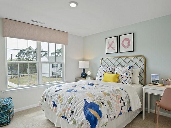 Welcome to the Hayden, one of our two-story floorplans in Preston Oaks in King, NC. This home features 5 bedrooms, 3 bathrooms, 2,511 sq. ft. of living space, and a 2-car garage. Upon entering the home, you’ll be greeted by an inviting foyer passing by the flex room, then led into the center of the home. This open-concept space features a functional kitchen overlooking the living room, a breakfast area, a guest bedroom and a full bathroom in the back of the home. The kitchen offers a corner walk-in pantry, stainless steel appliances, island, and a breakfast area. Step out onto the back patio, perfect for entertaining guests or relaxing after a long day. The second floor hosts the spacious primary bedroom and ensuite bathroom boasting two walk-in closets, a walk-in shower, dual vanity, and a separate water closet for ultimate privacy. The additional three bedrooms share a third full bathroom. The upstairs loft space is perfect for family entertainment or a reading space.