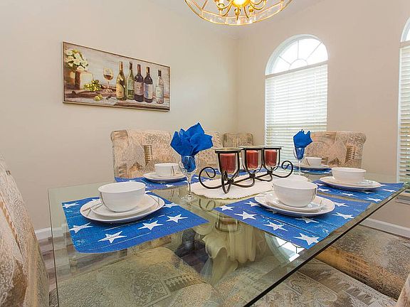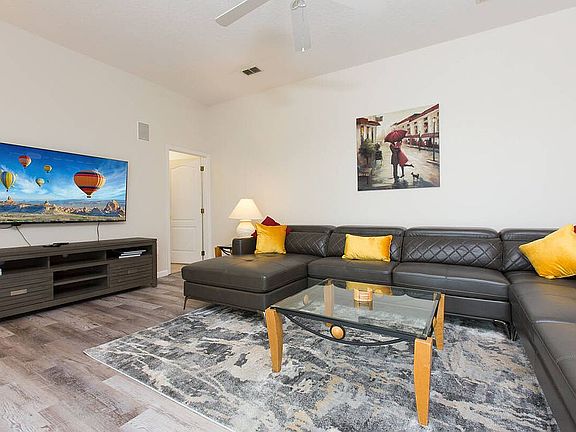 This elegant 5 bedroom, 3 bathroom home rental villa in Highlands Reserve has an easy access to Interstate 4, Golf course, Orlandos main attractions, and famous shopping stores and restaurants. It offers 2 master the King master bedroom and the queen master suite, 1 full bathroom with queen sized bed and 2 twin bedrooms both with twin beds. There is family room with loungers, living room with sofas, TV, DVD player, a fully-equipped kitchen with complete set of cooking needs, dining area with seats for 6 guests and a sparkling large pool at the back. A sleeper sofa is offered in the living area to complete the homes maximum accommodation for 12 guests. The tranquil community of Highlands is known as worlds famous golf course right on the premises where vacationers of these holiday homes in Florida can enjoy. Do not hesitate, come visit Orlando and book this home with DVRO now. Yes, NIGHTLY RATES for Orlando vacations available, call Discount Vacation Rentals Online.(RLNE404953)