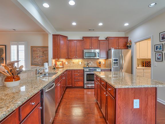 Beautiful Surrey Crest floor plan in the active adult community of Del Webb Lake Providence. Private, tree-lined, berm backyard, single level, 2 beds, 2 baths, office/den, fireplace, granite, ALL appliances remain, bookcases in garage remain, irrigation, plantation shutters, SS with gas range, sink in laundry room, kitchen backsplash, insulated garage, crown molding throughout, tile in wet areas, stamped concrete front & back patios, Sentricon termite system, California closets system in owners bedroom. This well-kept home is ready for you! Come make this your home today!!!