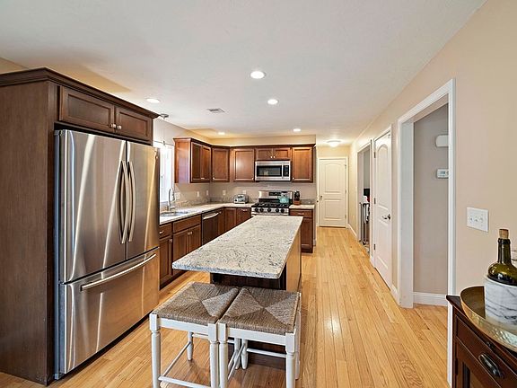 Don't miss out on this very well maintained 3 bedroom Colonial in a lovely neighborhood! Enjoy the huge completely fenced backyard and BBQs on the deck in the summer. The chef will love the kitchen with it's gas stove, granite counters and plenty of storage in the beautiful upgraded cabinets. You deserve to relax in the spacious living room and will enjoy the gas fireplace with it's custom mantle and built-in book cases. A formal dining room could also be used as an office or any other space you need. Upstairs you'll find a roomy master bedroom with a walk-in closet plus an extra area that could be a sitting room, or maybe add a master bath. 2 additional spacious bedrooms and a full bath complete the upstairs. If you need even more space, take advantage of the very large finishable basement and the huge attic! Wood floors and upgraded tile in all of the main living areas w/carpet in the bedrooms. Includes a fabulous shed w/electric as well. Less than 1 mile to the commuter rail.