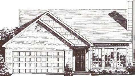 The Coventry is a 3-bedroom ranch that makes great use of space. The family room, kitchen and breakfast area share a vaulted ceiling that rises to 10'. The kitchen is open and huge, with abundant chocolate-colored cabinets and a big island. Bedrooms are located off a private hallway and master has a tray ceiling. Both baths have raised vanities and granite tops, and the master has a fully tiled shower and transom window. 5.25 baseboards and smooth ceilings (excluding garage). Mudroom/utility room combination off garage. Exterior accents include stone soldiering and keystone. Roof has architectural shingles. Job # 62EL