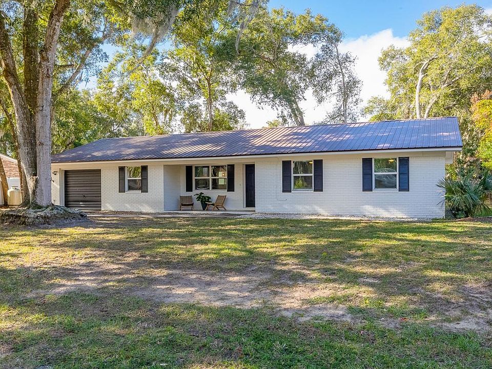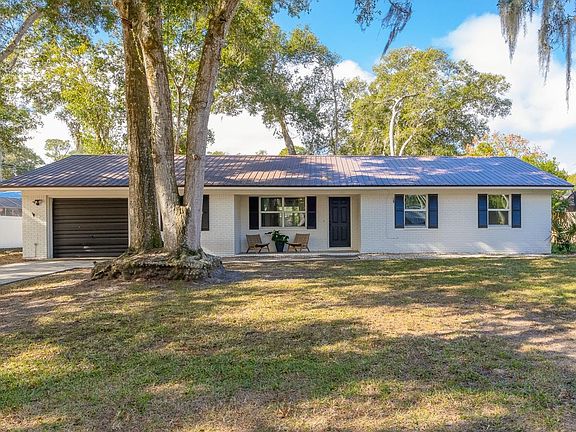 Welcome to this beautifully reimagined 3-bedroom, 2-bath single-family home situated on a large lot in the highly desirable non-HOA community of St. Augustine South. Listed AT appraisal, this home was completely gutted to the studs in 2023, this home was thoughtfully remodeled with new drywall, new electrical, modern lighting fixtures, and exposed wood beams that add warmth and architectural charm. The brand-new kitchen is a standout, featuring modern white cabinetry, quartz countertops, and premium Thor gas appliances, including an oversized chef’s stove—perfect for cooking enthusiasts. Gas service was newly installed to support the kitchen upgrade. Throughout the home, enjoy new luxury vinyl plank flooring, NEW updated windows, and fresh interior and exterior paint, creating a bright, cohesive living space. Both bathrooms have been completely remodeled. The primary bathroom offers stylish new tile, a large glass walk-in shower, and a new vanity, creating a spa-like retreat. The hall bathroom features a cool standalone soaking tub, updated tilework, along with a new vanity and modern lighting for a fresh, contemporary feel. Major updates provide peace of mind, including a 7-year-old metal roof & HVAC, 4-year-old hot water heater, and updated PVC plumbing. The expansive lot has been thoughtfully improved with $13K in tree removal and trimming, enhancing safety, openness, and curb appeal while maintaining privacy. A one-car garage completes this impressive property. Home is offered furnished if interested. Conveniently located near shopping, dining, beaches, and historic downtown St. Augustine, this turnkey home offers modern living with the freedom of no HOA restrictions—a rare opportunity in St. Augustine South.
