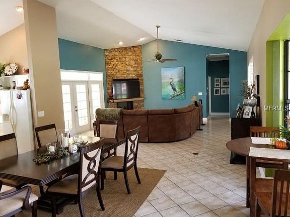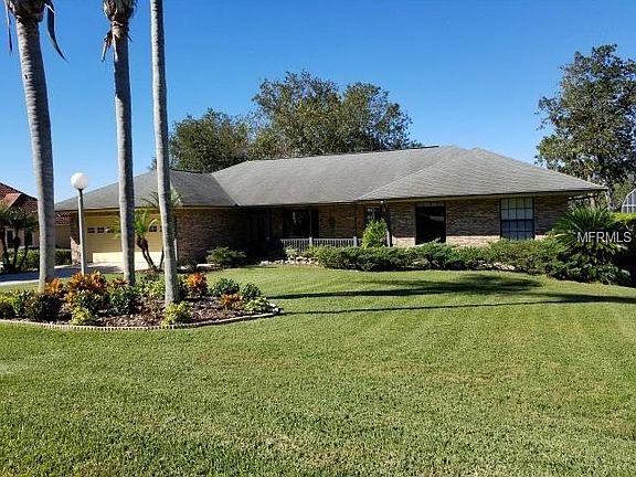 Tucked away in a quiet little cul-de-sac you will find this inviting custom built lakefront home. You are immediately drawn in by the peaceful sound of flowing water, courtesy of the pond in the entry. That "Welcome to Lakefront Living" extends to the interior layout of the home as well. You will enjoy those stunning Lake Juliana views from almost every room in the house! The home has soaring ceilings and open floor plan within the living, dining, and kitchen. The convenient design allows for private baths to three of the four bedrooms. A double sided fireplace provides a lovely ambiance in the main room as well as master suite sitting area. Both the master and 2nd master have access to pool. Home is equipped with roof shield under shingles providing double protection against leaks. Solid surface marble counter tops throughout the house. Literally minutes from I-4 allowing easy access to Tampa and Orlando.