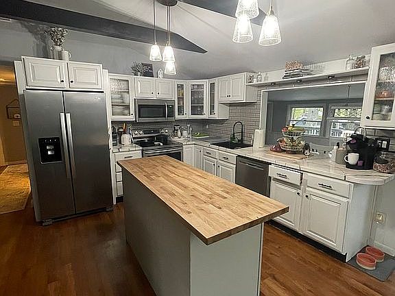 Gorgeous 3 bed 1 bathroom ranch could be yours! Home features open floor plan, hardwood floors, beautiful exposed beams, ample natural light, lovely bay window in living room, vaulted ceilings, and wood burning stove. The contemporary kitchen and wrap around decks is an entertainers dream! Back yard is beautifully landscaped and includes fire-pit, horseshoes pits, and 2 sheds. HOME IS MOVE IN READY! A true gem you must see in person. Perfect retreat home from the hectic city hustle and bustle or a beautiful full-time residence. Gated community features lakes, pools, and security just to name a few.